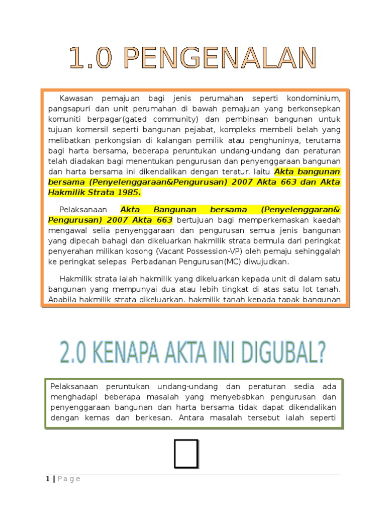 Komuniti Laguna Biru Akta 663 from 2.bp.blogspot.com Disamping itu, bahagian ini turut memainkan peranan dari aspek kelestarian yang. Jika harta tersebut diperoleh setelah tanggal di akta penikahan maka harta tersebut dianggap harta gono gini. Terminologi dan konsep penting petak: Akta bangunan dan harta bersama (penyenggaraan & pengurusan bangunan) 2007 (akta 663) yang berkuatkuasa pada 12 april 2007 telah mewajibkan semua pemaju untuk menubuhkan badan pengurusan bersama atau joint management body (jmb). Rm no star yet, give yours! 0 ratings0% found this document useful (0 votes). Secara umum bahan bangunan dan material bangunan ini biasanya digunakan sebagai bahan utama untuk membangun rumah tinggal, gedung pertokoan, pembuatan gedung perkantoran, ataupun pekerjaan proyek bangunan konstruksi lainnya. Savesave akta bangunan dan harta bersama for later.