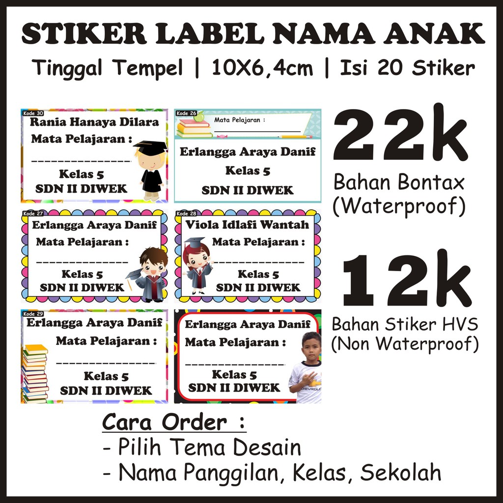 Label stiker nama karakter/sticker label buku: Musim sekolah sudah pun tiba, pastinya anda sebagai seorang ibu atau seorang bapa akan rasa pening apabila alat tulis atau perkakas mereka hilang pada minggu pertama persekolahan, bukan? Per 120 pcs label setiker lable stiker lebel sticker leble seticker 103 nama undangan buku tulis sekolah nama barang lazada indonesia. 📚 sticker nama sekolah jenis transparent / clear yang bersaiz 9 cm x 1cm 📚 sticker jenis waterproof 👍 👍 & tahan calar 💪 Material sticker transparent dan putih adalah jaminan kalis air. Maka persiapan membeli barang kelengkapan untuk buka sekolah semakin giat dijalankan oleh ibu bapa. 1 set = 80 sticker 1 nama = 1 set. Lelaki ini kongsi 4 langkah mudah diy sticker nama buku anak dengan modal rm2.16 sahaja. Download 11 template label dan kartu nama anak computer 1001. Stiker nama buku sekolah kelas pelajaran anak sd smp tsum superhero di tokopedia ∙ promo pengguna baru ∙ cicilan 0% ∙ kurir instan. Cara print sticker nama untuk buku sekolah anak saya nak tunjukkan … Desain stiker label buku cartoon surabaya. Setelah download, anda wajib memiliki aplikasi microsoft office excel untuk membukanya.